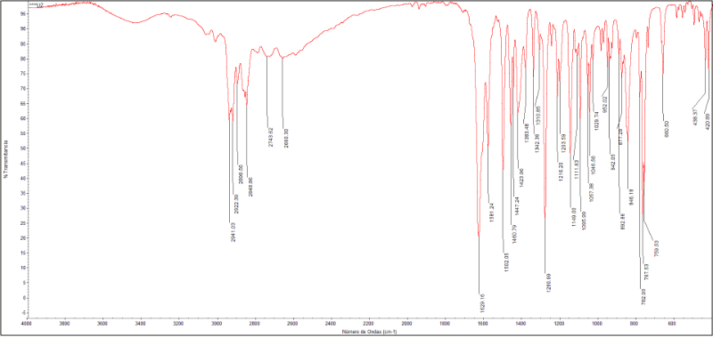 Tome el espectro realizando la pastilla de KBr y es inicialmente un polvillo de color amarillo