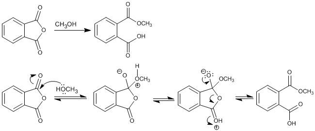 Te indico el mecanismo de reacción entre un anhídrido cíclico y metanol
