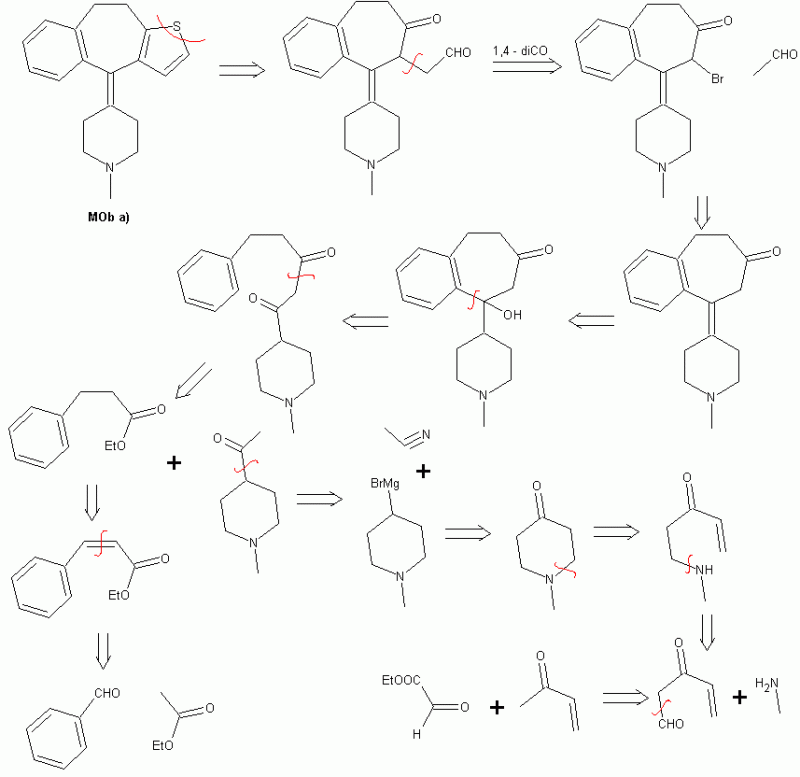 Hola Wilbert, con respecto a la Mob A, no me cuadra la reacción entre metil-vinil-cetona y p-cloro bezaldehído, según yo sobra un carbono y no da la molécula q deseas; yo hubiera usado acetilacetato de etilo y etoxidode sodio para atacar el benzaldehído.