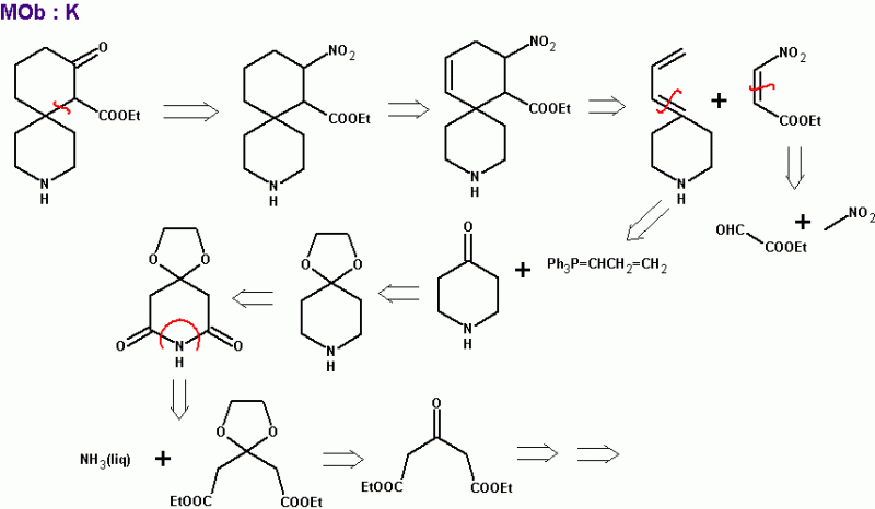 Sobre la molécula H, debo también decir que tienes razón, sólo señalé las desconexiones y a tiempo de realizar el proceso en sentido de la síntesis, obviamente que se debe proteger el grupo amino, como grupo amida y desproteger donde corresponda.